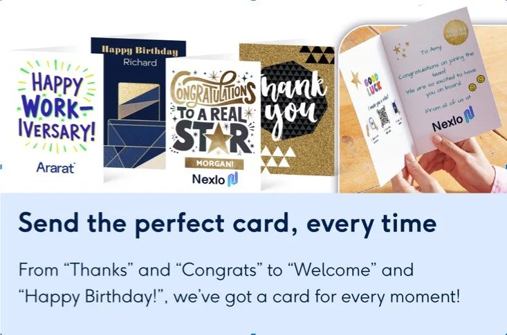 Celebrate your team with personalised cards: Birthdays, Anniversaries or New starters? Make every moment matter for just a few pounds.